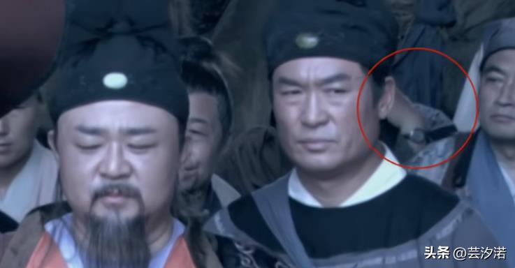 不仅如此,当镜头切换到近景时,离谱的一幕又发生了,虽然刚刚那位抽烟的小哥不见了,但这次又来了个戴表的小哥,难道大周这么超前吗?不是抽烟就是戴表。