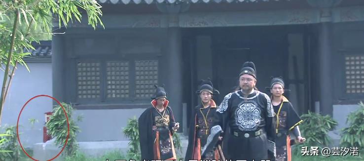 就在这个片段中,狄仁杰正在带领手下查找案件的蛛丝马迹,但值得注意的是,几人身后的房子旁边竟然有一个红色的灭火器,这个穿帮属实有点明显了吧,要知道那个年代怎么可能会有灭火器呢。