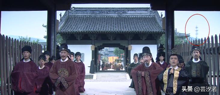 还有就是剧中的另一个片段,镜头中众人正在衙门里谈话,然而让人震惊的是,远处竟赫然出现了一个5G的信号塔,大周朝果然是“遥遥领先”啊。