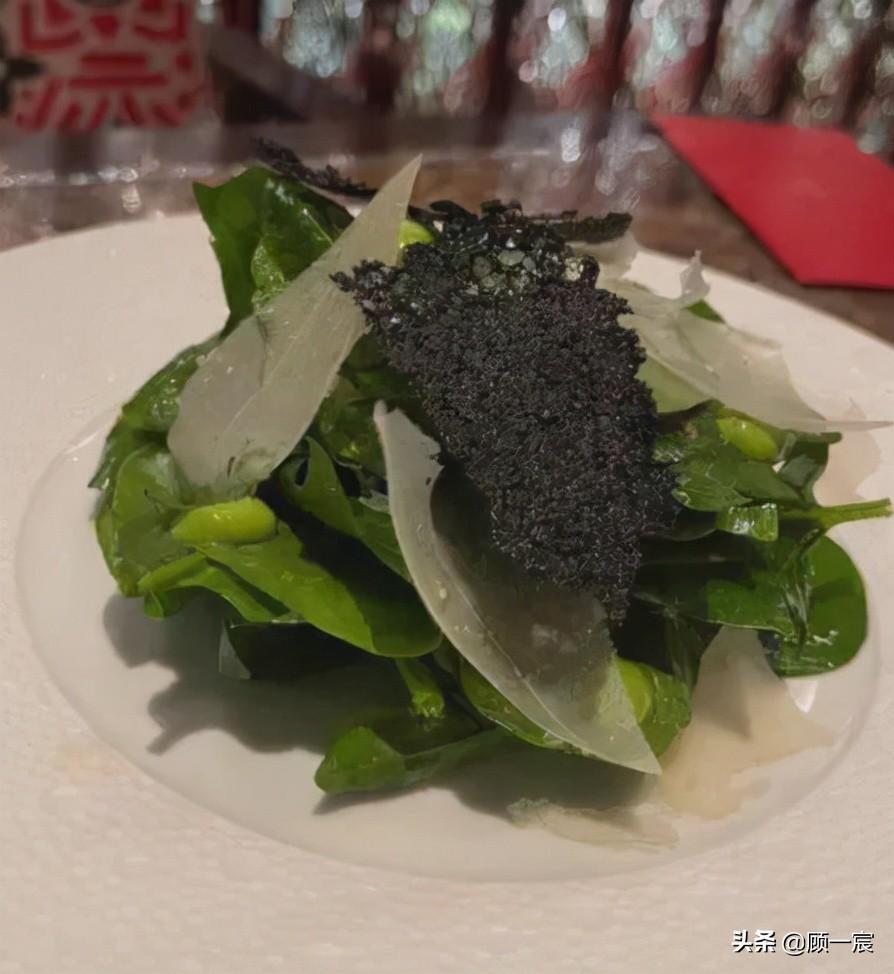 而她的发文也很有意思,在绿的发黑的菜上配文:“南半球与北海道。”