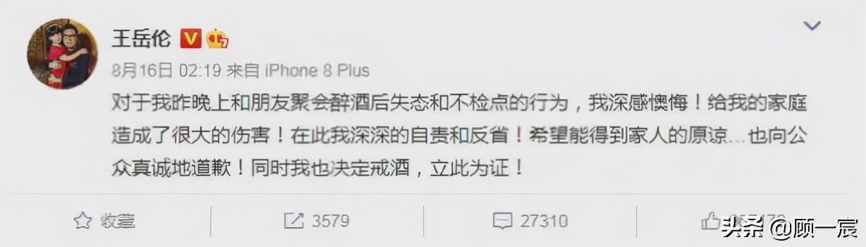 或许这次事件的恶劣影响比较大,王岳伦公开道歉,并决定戒酒,立微博为证。