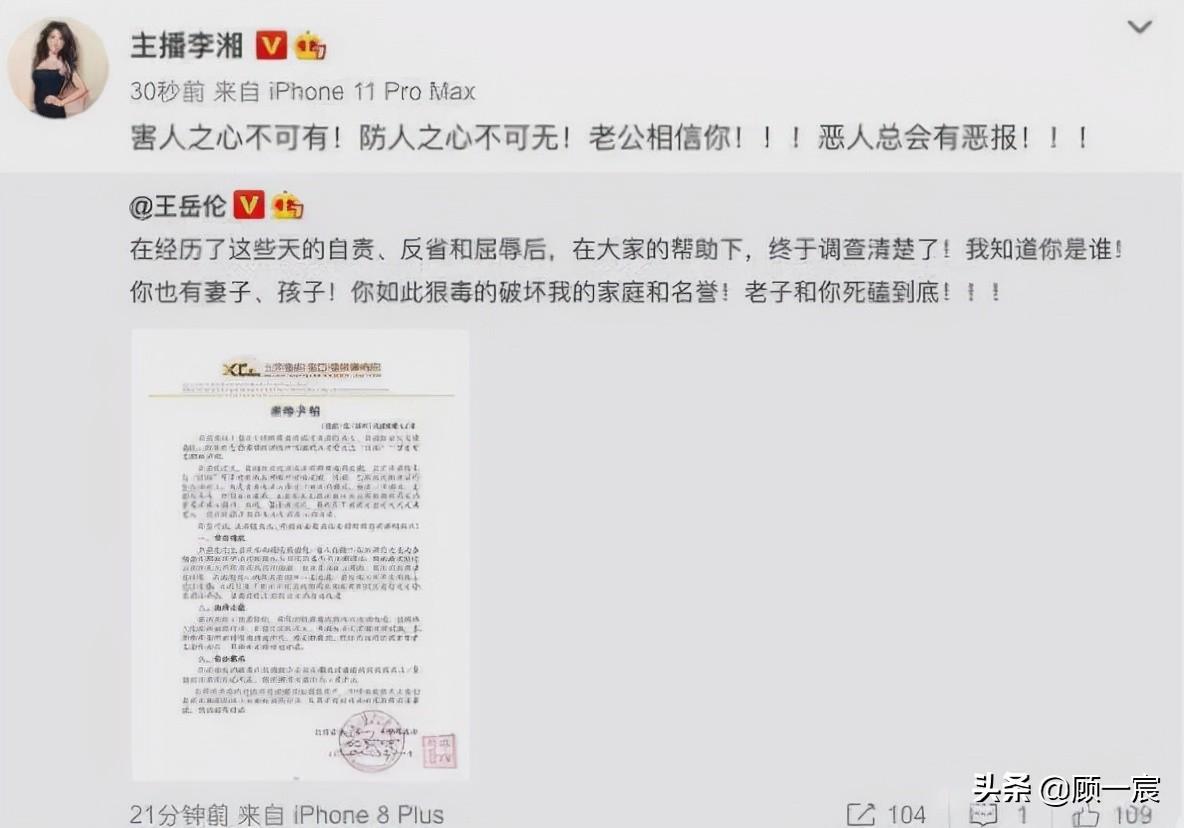 并在微博中晒了律师声明,李湘一并转发,并发文表示自己会相信老公。