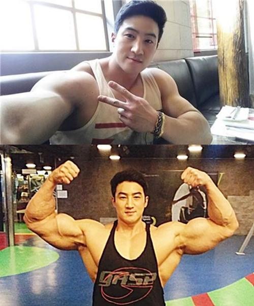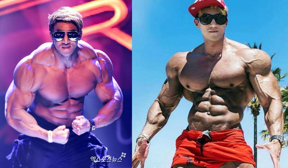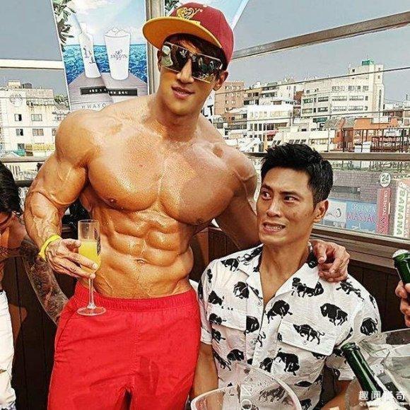 黄哲勋,1983年9月1日出生于韩国,身高178厘米,体重超过了200斤,他是一名体育教练,运动员和健身模特,经常在社交媒体发表自己的健身观点或上传健身视频,他在社交平台上拥有上百万粉丝,是亚洲健身圈的超级网红!他的肌肉体积如此之大,以至于在重量级健美运动员李承哲旁边,看上去也不小。