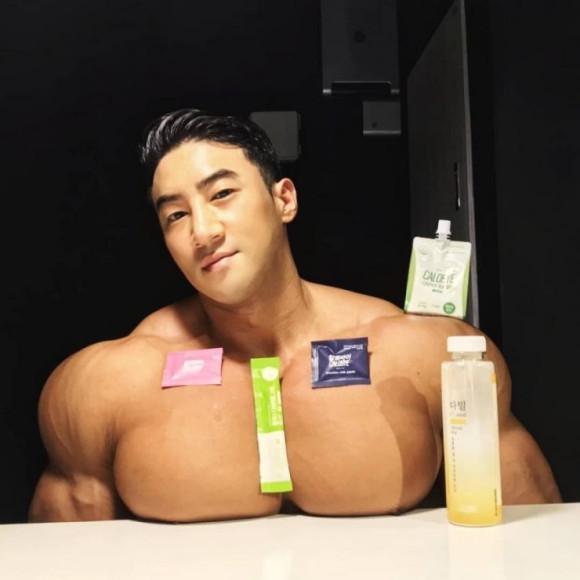 他的肱二头肌有50厘米,腿围67厘米,胸肌E罩杯,有“韩国胸王”之称。肩膀肌肉也超级发达,早期时腰部很细,但如今,腰部已经变得和腹部一样粗,让人感觉他是一个重量级的健美运动员,而不是健体选手。