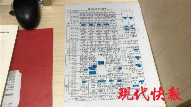 现代快报记者看到一张孩子的课表,一天的流程满满当当。孩子们每天从早上 5 点 30 分起床之后,要进行思维拓展、情商训练、体能等内容。之后,每个孩子按相应的年纪进行语数英等科目的学习。课表里,诸如洗漱、交友沟通、早午餐、睡觉都被一一列好,并限定了时间。