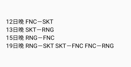 参考以往的交手经历,SKT对RNG略占上风,而RNG对FNC更胜一筹。不过,本赛季的SKT在阵容方面不像以往那么无懈可击,RNG相比于去年实力明显下滑,而FNC则失去了欧洲最好的中单选手之一的Caps。