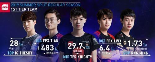LPL夏季赛最佳阵容,上单为TheShy。