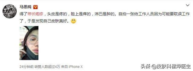 但是高强度的工作,以及春季换季易过敏,导致马思纯不小心得了带状疱疹。