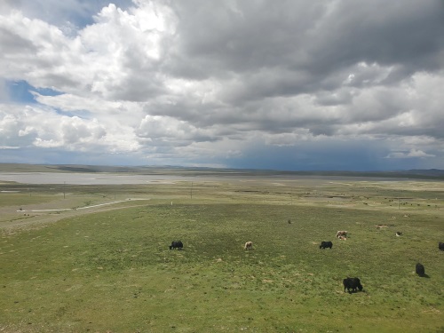过了那曲,人烟气息更加浓厚了起来,时不时可以见牧民的房屋、车辆和成群的牦牛,草原也绿了许多。