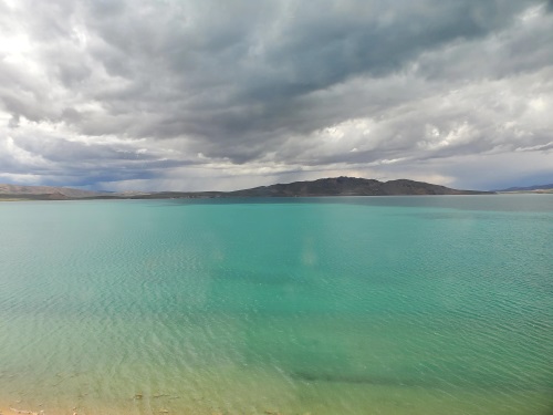 下午2点多钟,列车临时停在了一个叫做措那湖的小站上。阴云密布下的措那湖,犹如一块巨大的翡翠平卧在大地上,几乎惊掉了那些江苏大妈们的下巴。