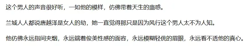 贴几个我看过的印象很深刻,当时觉得句子很好的片段,哈哈哈,看霸总文还抄好句好段的估计没几个了
