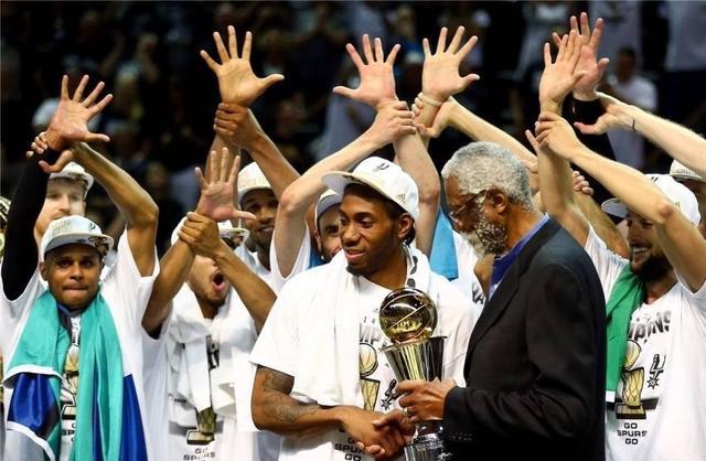 莱昂纳德从拉塞尔手中接过FMVP奖杯