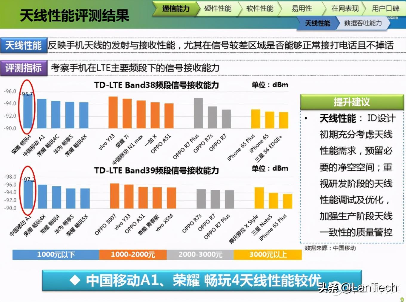 其实,普通用户更关心的是手机性能怎么样,信号好不好,网速快不快等。关于手机最基本的通讯功能,天线的性能,各个频段下的TIS/TRP等参数(TIS:天线在不同频段下的接收灵敏度,体现手机天线对网络信号的接收及解析能力。TRP:天线在不同频段下的发送灵敏度,体现天线对手机信号发射的能力和质量,可侧面反映在同等网络环境下进行业务时手机的发射功率情况,该项性能越好手机所需的发射功率越低,辐射越小),以及其他方面的表现,笔者的建议是可以看看中国移动每隔半年左右发布的《终端质量报告》,网上都能下载查看到PDF版本。会对市面上销售的近百款不同价位段的手机进行天线性能的评测,报告全篇大约是100多页。对于普通用户来说,还是有相当的参考价值的。