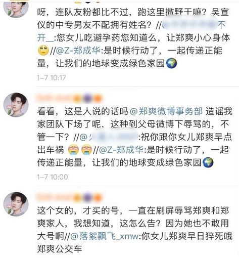在此之前,郑爽也因为网络暴力上升到了自己爸爸身上,吴宣仪的粉丝不知道什么原因,突然攻击。在爽爸的微博底下,用极其恶劣的语言辱骂郑爽,还让她早日出车祸。让身为父亲的爽爸看到这些东西,换位思考一下,是何等的心痛。大家努力工作都是为了混口饭吃,没有做过伤天害理的事情,却被诅咒去死。
