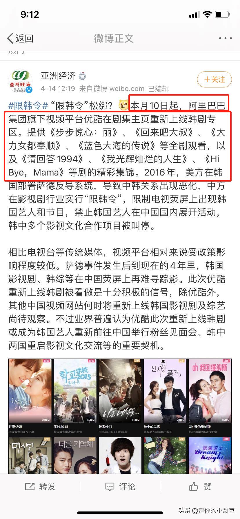 针对权志龙的此次在国内社交平台的高调回归,有网友敏锐的察觉到有可能韩流即将卷土重来。此次韩流的代表明星“权志龙”宣布重新代言茶π饮料,被看做是“限韩令”松绑的重要标志。在此之前,优酷已经在自己的平台上重新上线了众多知名韩剧。限韩令的松绑是否会对接下来内娱的格局产生影响?