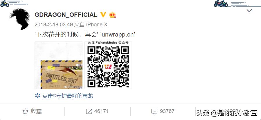 这是他继去年11月底退伍之后,首次在中国的社交网站上发声。在那之前,权志龙的微博最后一条一直停留在他2018年2月18日入伍前夕更新的最后一条:“下次花开的时候,再会。” 也暗示与粉丝定下承诺,在花开之际自己会重新回到粉丝面前,在那之后就开始了长达两年的入伍生涯。所以这次微博写下的回归七字宣言也兑现了自己当初对粉丝的承诺。
