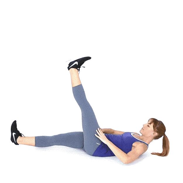 平躺在垫子上,两腿微微分开抬起左腿,腿要伸直不能弯曲,头颈微微抬起,背部始终紧贴地面,左腿与地面成垂直状态再往下换另一只脚做同样的动作,加大点难度的话,身体抬起,左腿抬起的同时左手去触脚踝,右腿也是同样的动作。一组做30个,总共做3组。