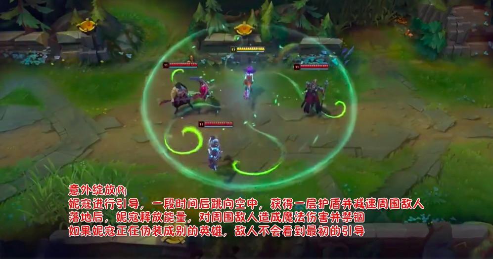 如果你觉得妮蔻是一个单纯的线上英雄的话,那你就错了,因为妮蔻的大招:意外绽放就是一个非常不错的团控技能。在进行短暂引导一段时间后跳向空中,获得一层护盾并减速周围敌人,落地后,对周围敌人会造成魔法伤害并禁锢,如果结合被动技能的话,敌人在一开始是看不到最初的引导的。