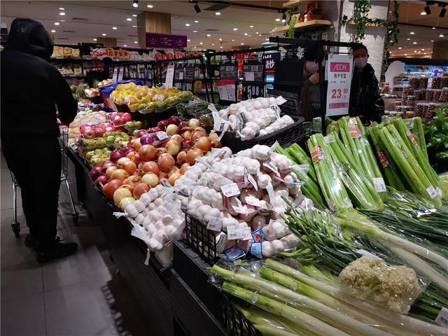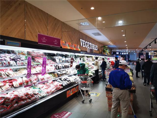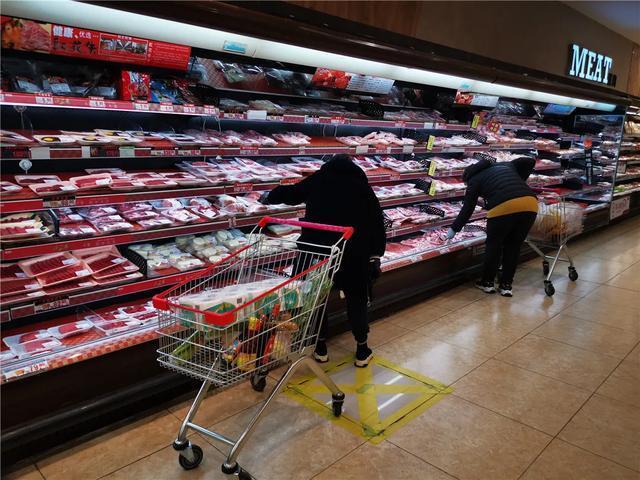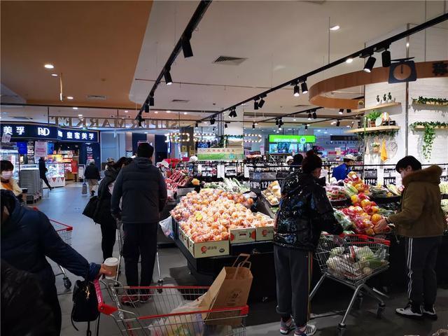 超市蔬菜水果、海鲜肉类等货品齐全,供应非常充足。大家都在仔细挑选,储备未来几天的物资。