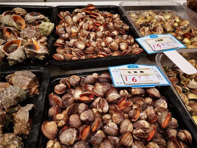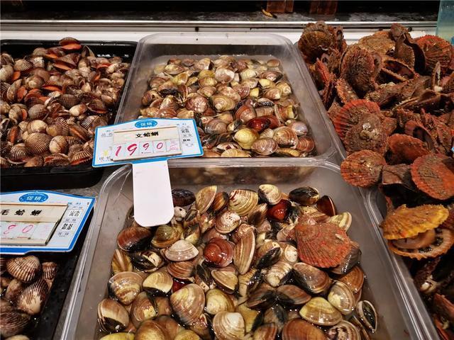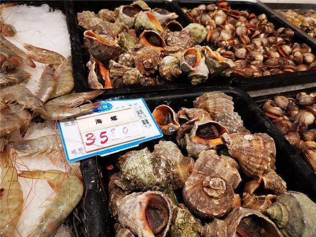 扇贝8.9元、海螺35.8元、海虾39.8元