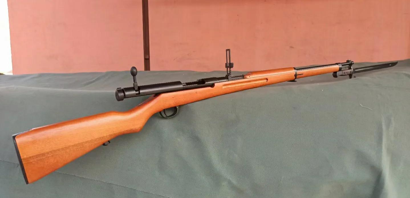 1907年,鬼子正式把三八大盖作为制式步枪,开始逐步替换原来的三十年式,到1910年全部替换结束。1921年三八大盖又做了一次小改动,表面防腐蚀处理改进,膛线由原来的6条变成了4条,1938年该枪进一步增加产量,这次为了节约成本,木托采用俩块板拼接而成,鬼子从古到今感觉都一直缺资源,一直省资源。三八大盖一直使用到第二次时间大战结束。