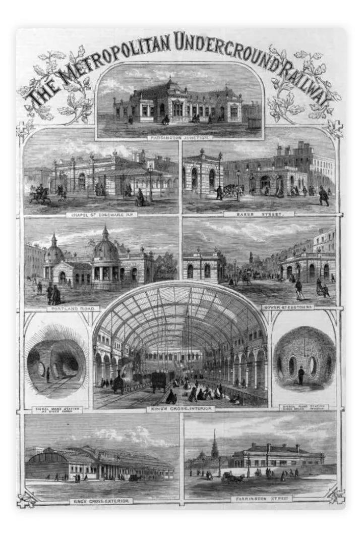 地铁名字的由来出自当年的宣传画报,标题中的“Underground”这个词渐露头角。后来直接成了“伦敦地铁”的代名词。上面写的The Metropolitan Underground Railway,国内一般翻译为“大都会地铁”。