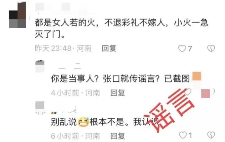 事发后,有人在网上无端揣测,说“都是女人惹的祸,不退彩礼不嫁人”,被证实是谣言。
