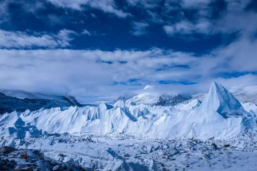 满目耀眼的冰蓝色,纯洁、空灵、无边无际,仿佛踏入一个干净的、没有一丝浊气的仙境。海拔5500米的极地,当我站在瑰丽、奇美的冰川脚下,亲手触摸那千年的冰晶,那份感动令人永生难忘。