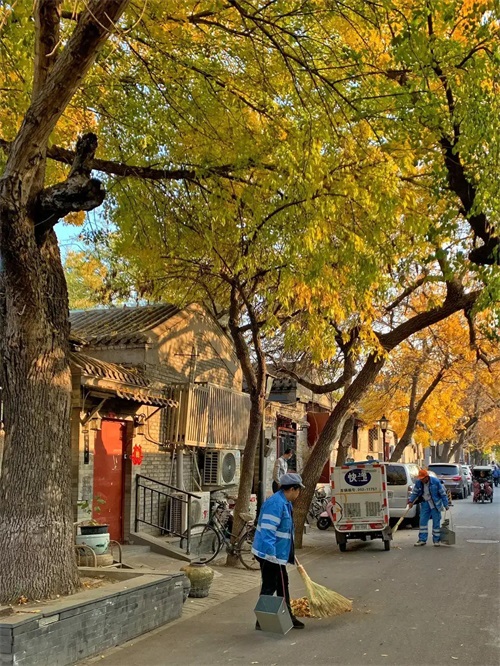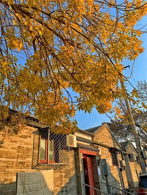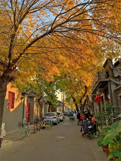 长着金黄色叶子的白蜡子树,狭窄而幽深的巷子,灰瓦青砖的四合院,巷口闲坐的大妈大爷…