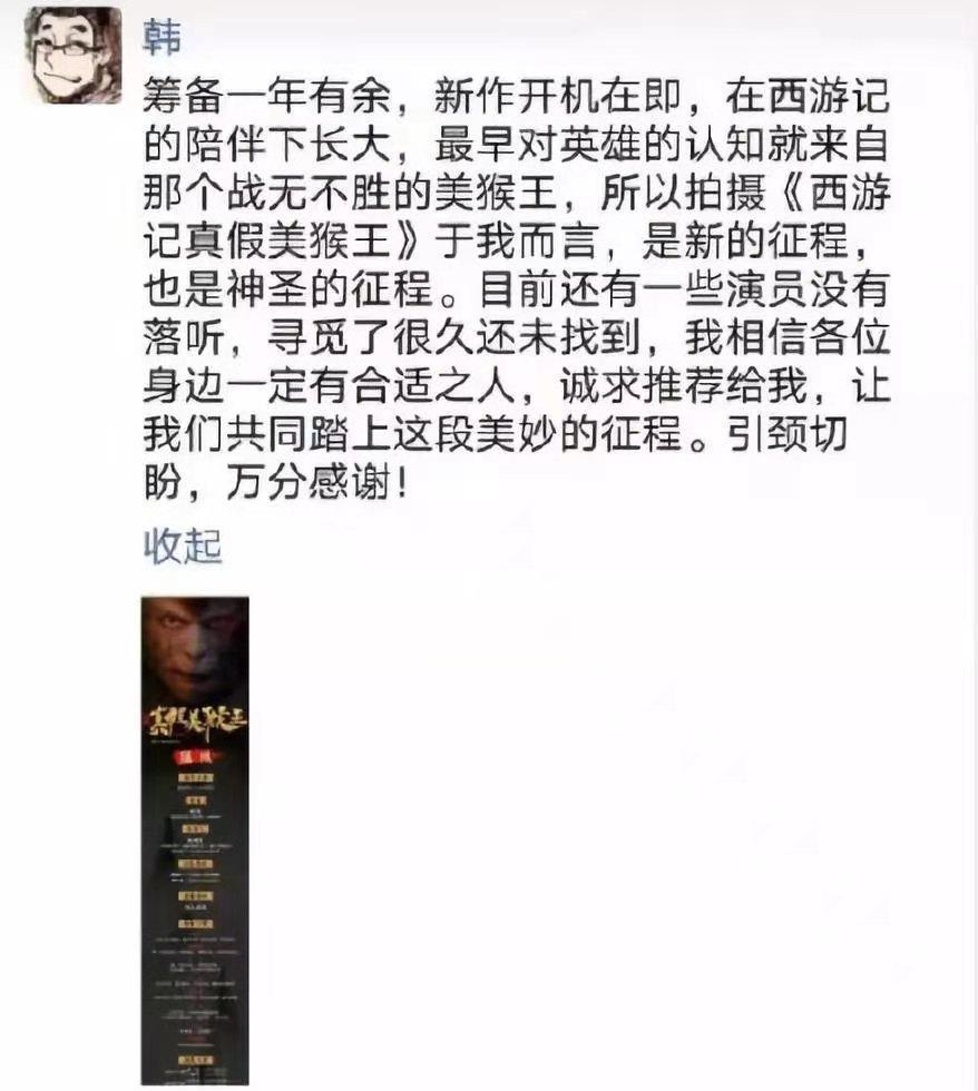 而另一方面,中美合拍的计划似乎已经被搁浅,而导演转而使用了具有不错作品的新生代导演韩延。也就是拍出了《滚蛋吧肿瘤君》,《动物世界》的这位。