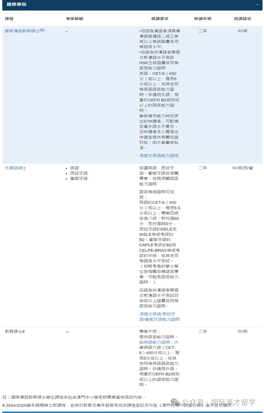 澳门科技大学专业项目多样,不同专业有不同指定要求,以下以“国际学院国际汉语硕士”为例: