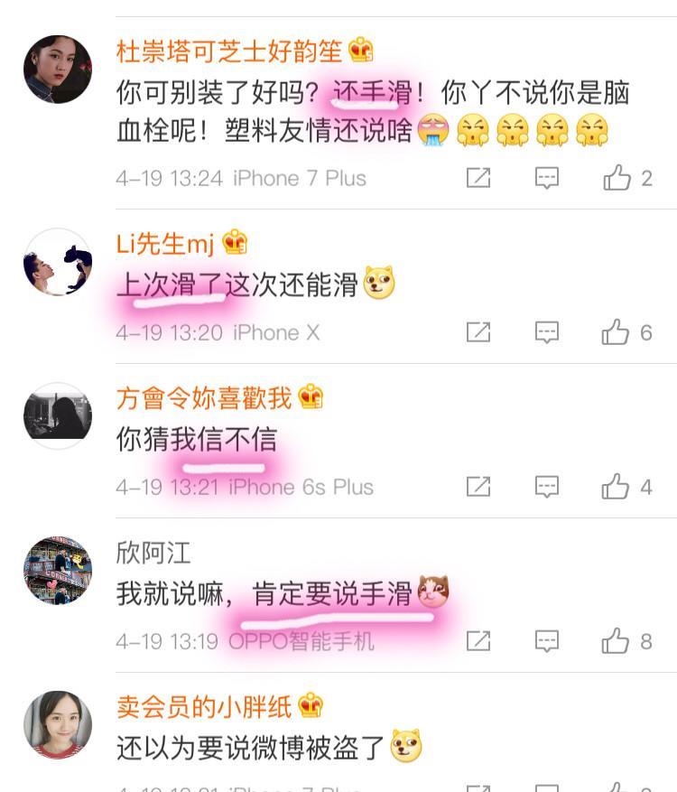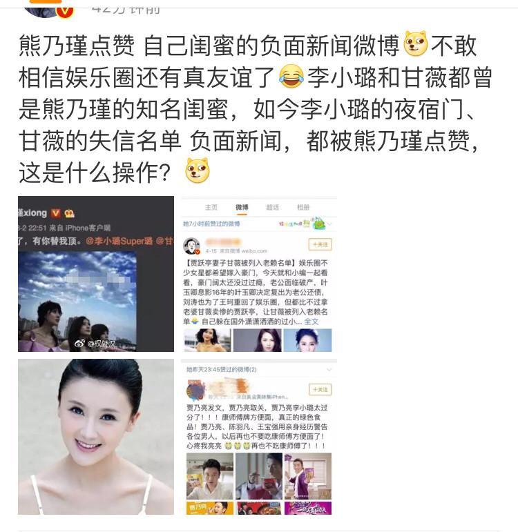 这样的场景好像前不久才刚刚见过,泰迪姐妹团中老三李小璐夜宿门事件发生的时候,熊乃瑾也是点赞了李小璐的负面新闻,不是鼓励而是落井下石。网友纷纷表示“怎么又是手滑”“除了手滑,你的全身都滑”“怎么这么巧”