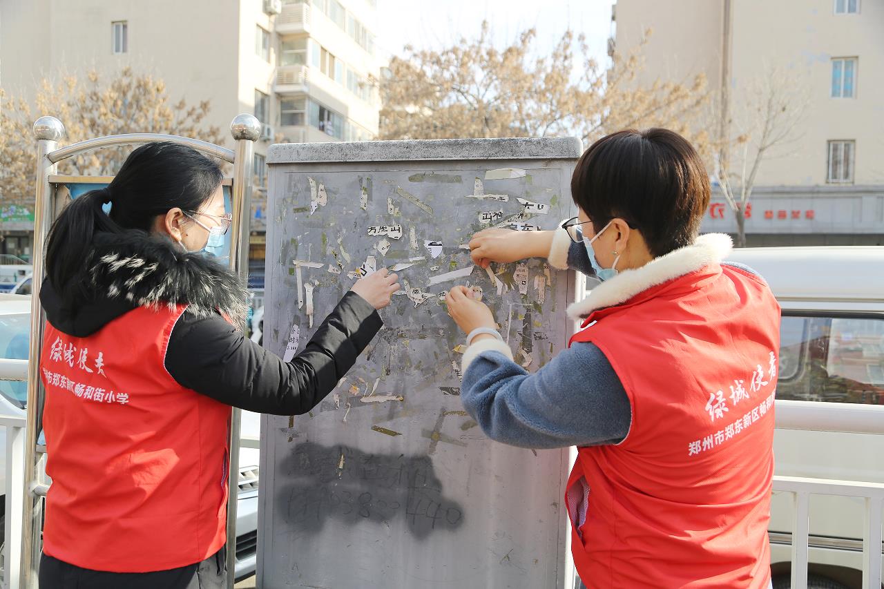 志在心中,愿在行动。畅和街小学的志愿者老师们走上街头,沿途清理小广告,并向市民宣传《做文明有礼的郑州人》,学习践行《郑州市文明行为促进条例》,以行动传递志愿者正能量,发扬“文明与我同行”的精神,同时,学校组织各年级分小组积极开展《志愿服务条例》和《河南省志愿者服务条例》的学习活动。