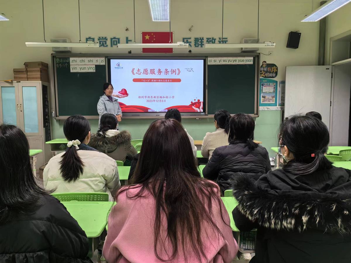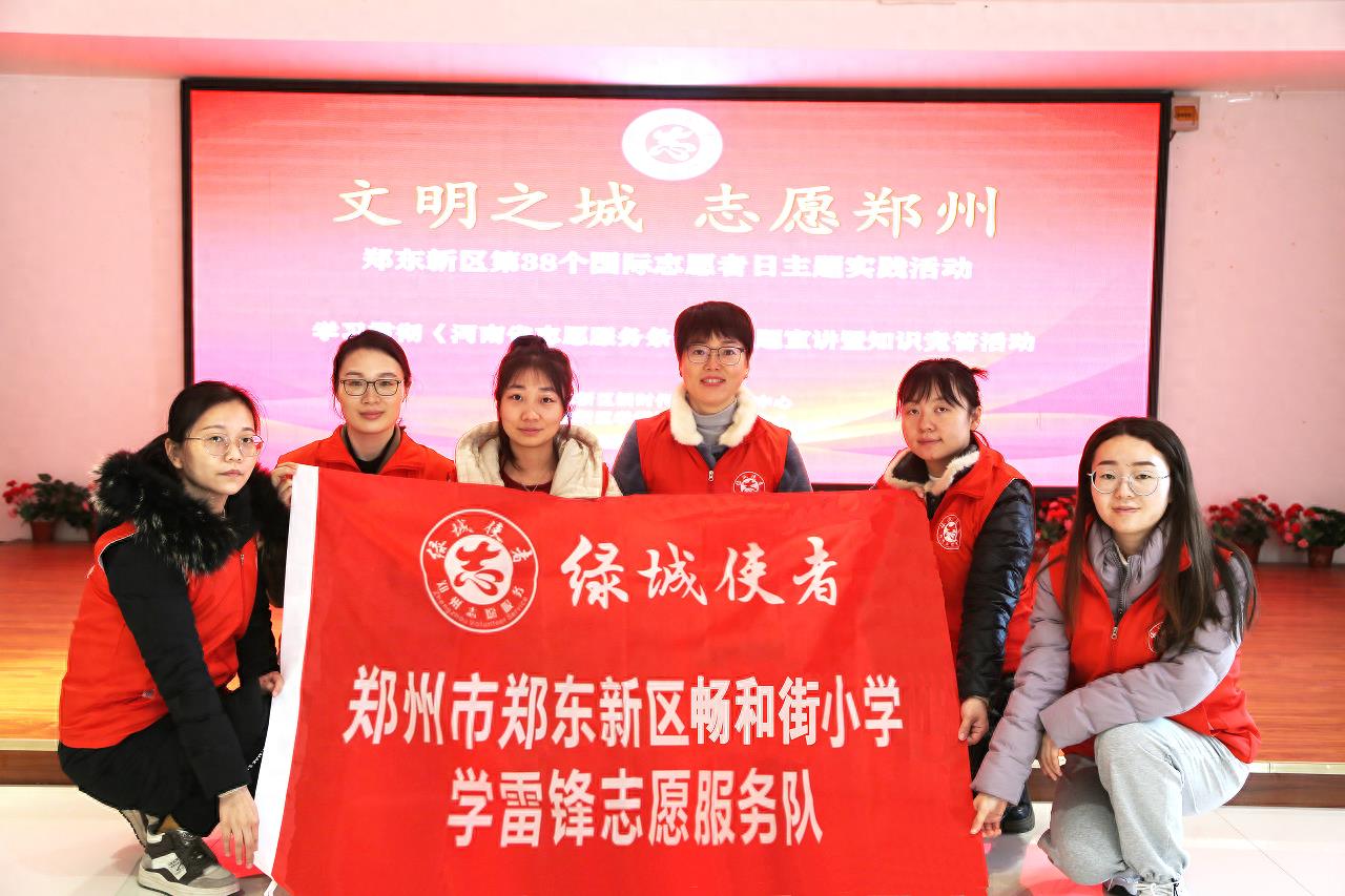 12月5日是第38个国际志愿者日,为大力弘扬“奉献、友爱、互助、进步”的志愿精神,普及“学习雷锋,奉献他人,提升自己”的志愿服务理念,凝聚志愿者力量、展现志愿者风采,郑州市郑东新区畅和街小学参与了由郑东新区新时代文明实践中心、郑东新区学雷锋志愿服务中心举办的以“文明之城 志愿郑州”为主题的实践活动。