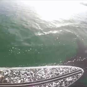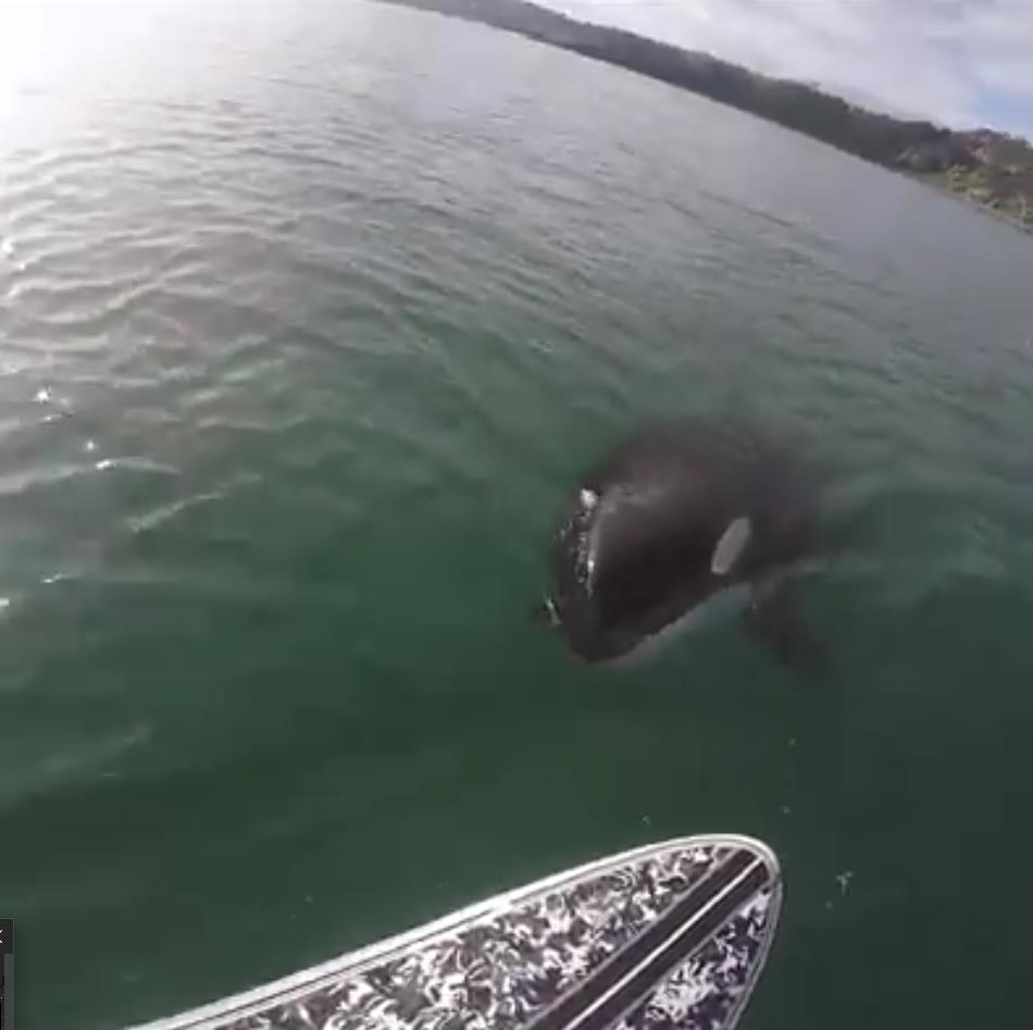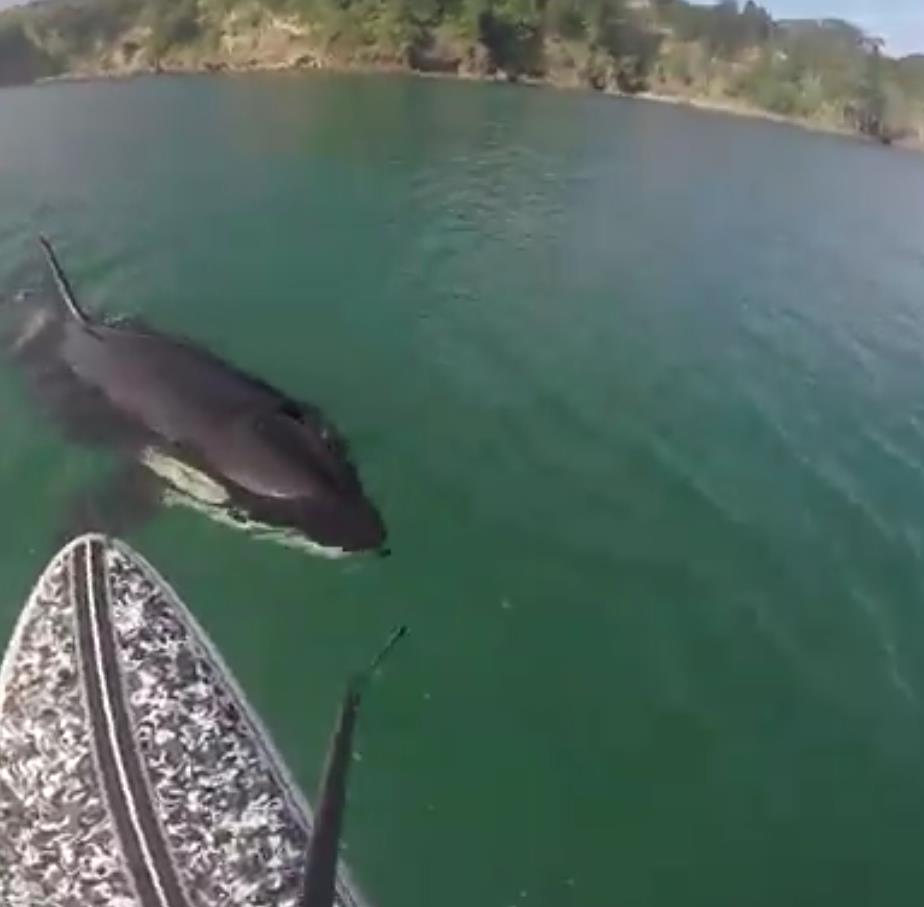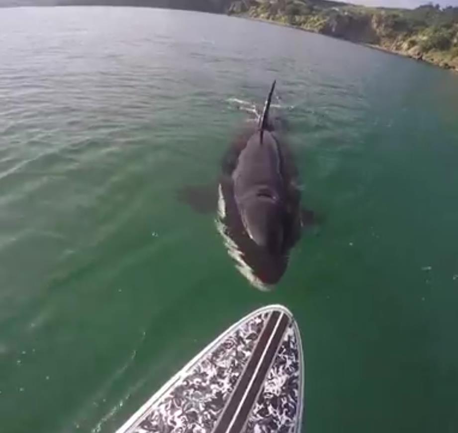 虎鲸,又叫杀人鲸,顾名思义,人类对它的惧怕可想而知,近日,一位冲浪爱好者记录下被虎鲸尾随的一幕。