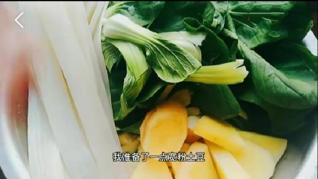 土豆,油菜,宽粉,还有各种火锅丸子,调料有葱姜蒜,花椒,辣椒,火锅底料,油,生抽。