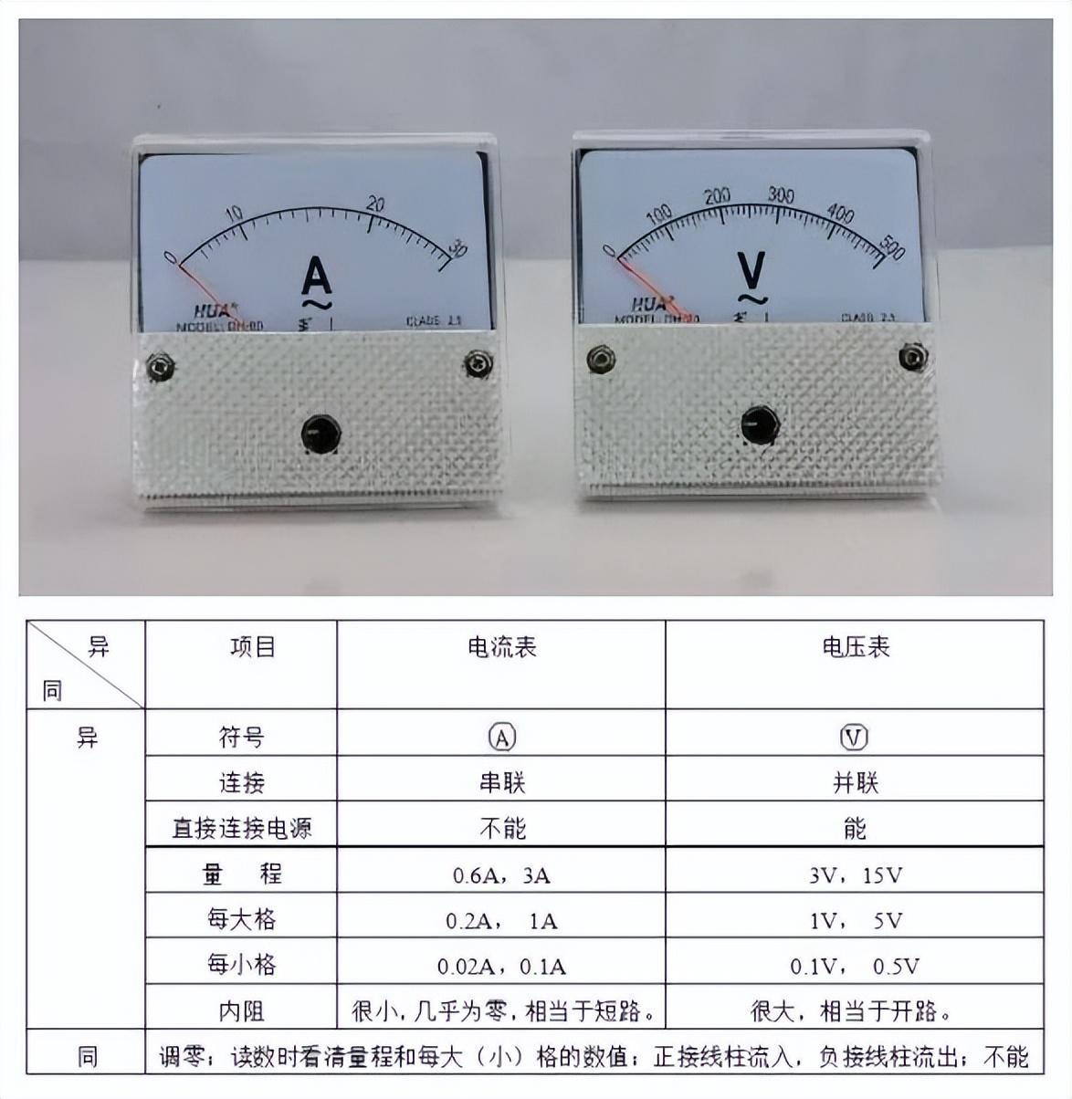 电压表和电流表的相同点和不同点