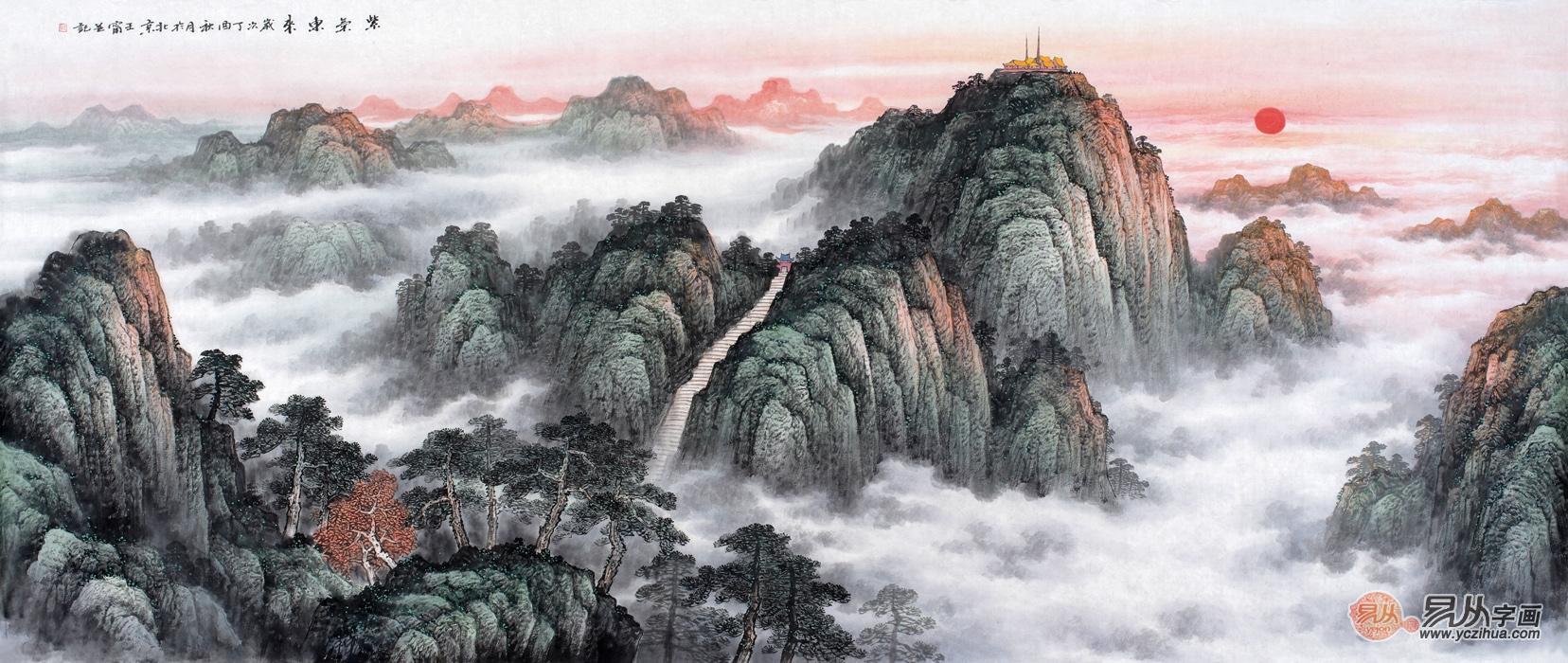 五岳之首 王宁最新力作八尺横幅泰山国画《紫气东来》作品来源:易从网
