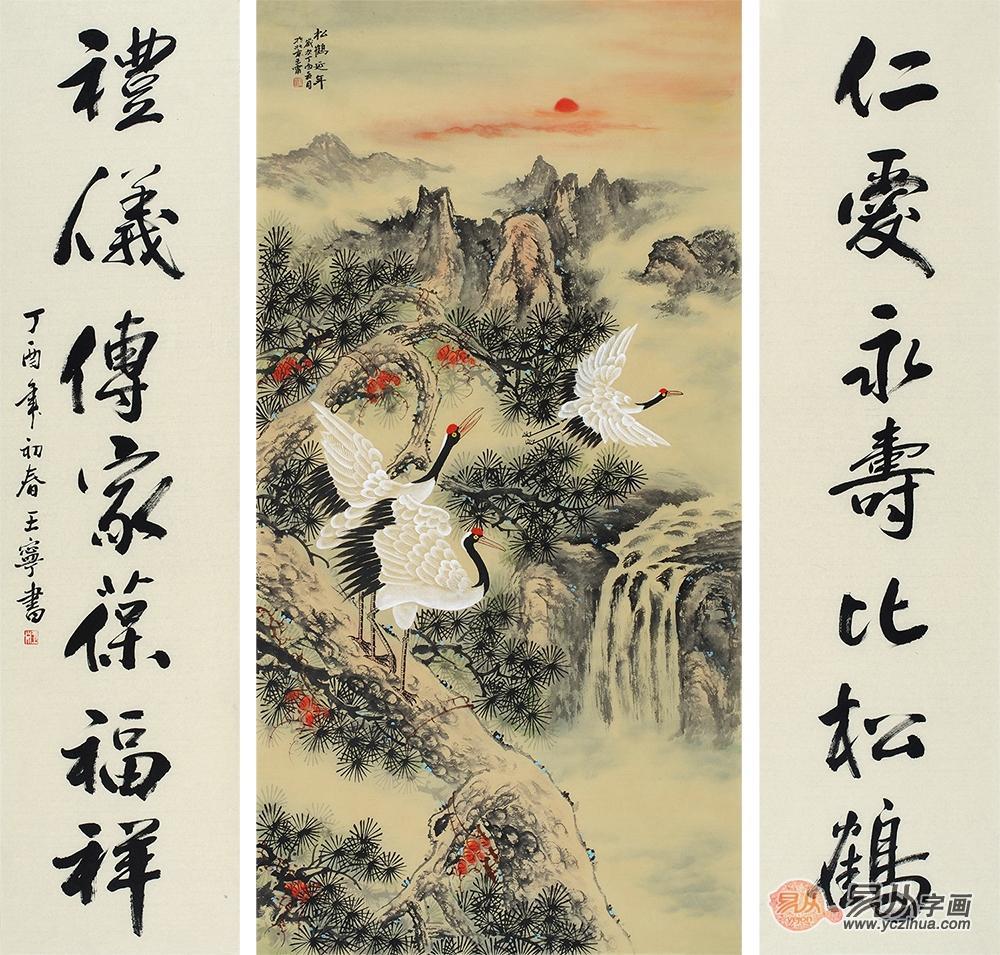 客厅中堂字画 王宁最新力作山水画《松鹤延年》作品来源:易从网