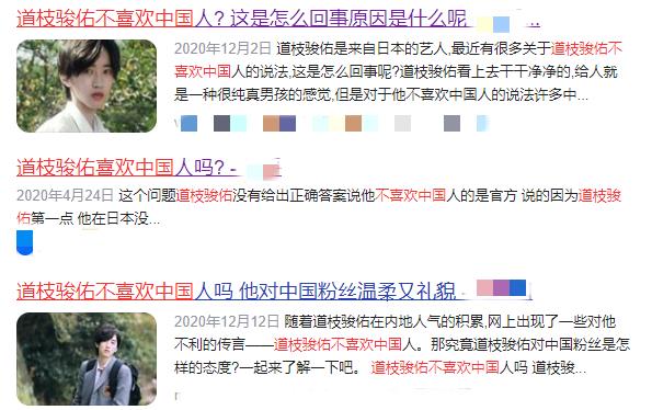 且不说道枝骏佑的思想觉悟有多高,单就他在日本国内人气平平,反倒是在我国火得不行的趋势来看,他也不会发表这样的言论,劝退自己的“衣食父母”。