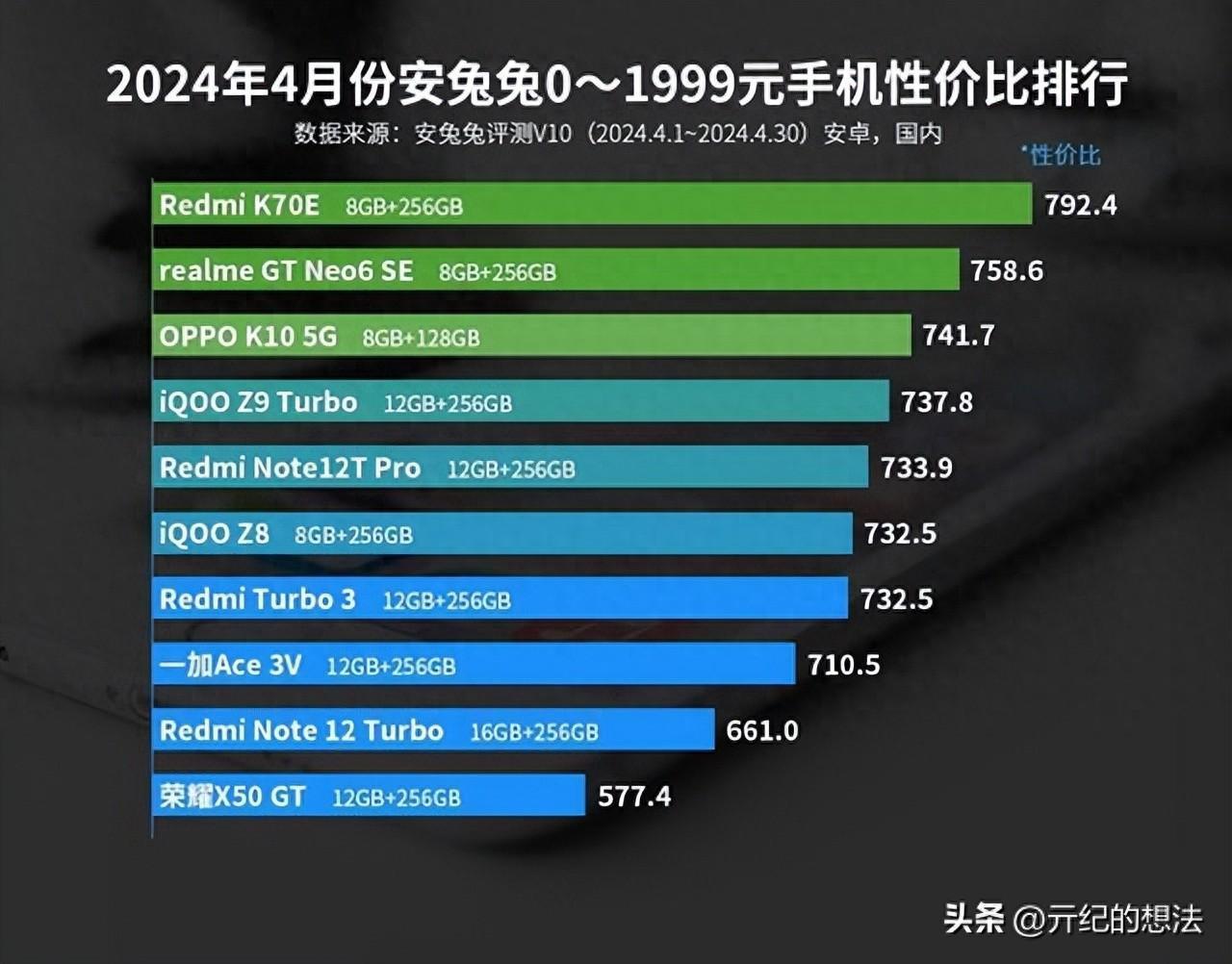 对于4月份千元机性价比榜单,亓纪的想法是这样的:千元机的性价比榜单是最值得参考的,因为这个价位的机型基本上都是以性能为卖点,主打影像等其他卖点的千元机屈指可数。除了新发布的4款机型以外,降价促销的红米K70E也很值得推荐,预算实在不足也可以看看红米Note12 Turbo。至于LCD党用户,目前在售的两款LCD性能手机已经在清仓了,有需要的把握住时机和价格且买且珍惜吧。