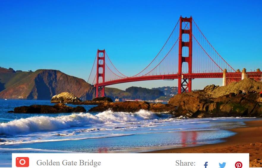 金门大桥(Golden Gate Bridge)横跨旧金山湾,与旧金山和马林县(Marin County)相连,自1930年代建成以来,一直是加利福尼亚的标志性建筑。与蓝色的水形成对比,这座桥的橘红色为这座城市带来了独特的品质。当它被雾笼罩时也别有风情。这座桥长约2英里,是101号或SR 1号高速公路的一部分。