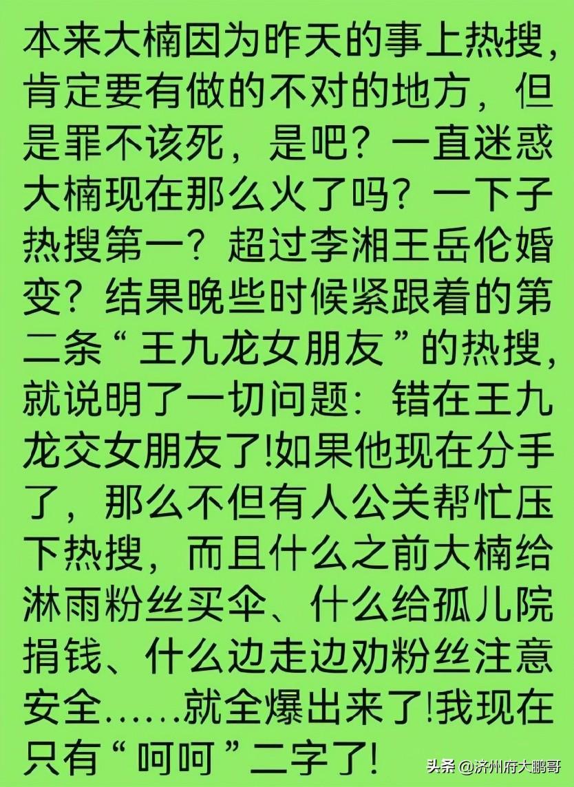究竟为什么呢?也许是因为前段时间,王九龙公布了自己有女朋友的消息。