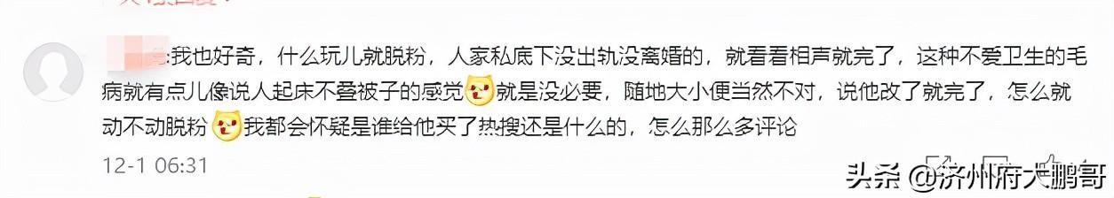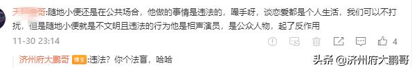 还有人更夸张,说:随地小便还是在公共场合,他做的事情是违法的,嘬手呀,谈恋爱都是个人生活,我们可以不打扰,但是随地小便就是不文明且违法的行为他是相声演员,是公众人物,起了反作用。