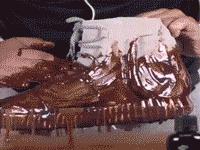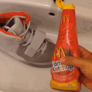 好吧,也许看图来说,这个行为真的Over了,但一个有专业精神的球鞋爱好者,绝对是不愿意看到任何不明液体触碰到鞋面上。