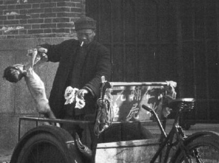 民国时期在城市有一种职业,收尸。每天一大早,就骑着收尸三轮车,到街上收集饿死的小孩的尸体。