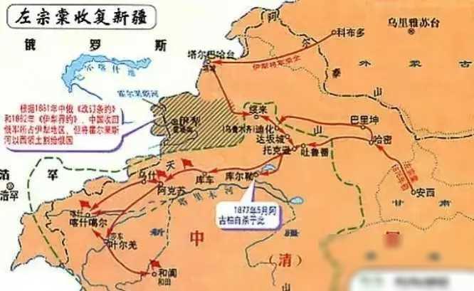 沙俄看到了这个机会,迅速派遣军队进入伊犁地区,并与阿古柏签订了“通商条约”,以此表明对阿古柏的支持。清朝派遣左宗棠率领军队前往收复新疆,并在1876年至1877年间成功击败了阿古柏政权,收复了新疆大部分地区,但伊犁地区仍被沙俄军队所控制。