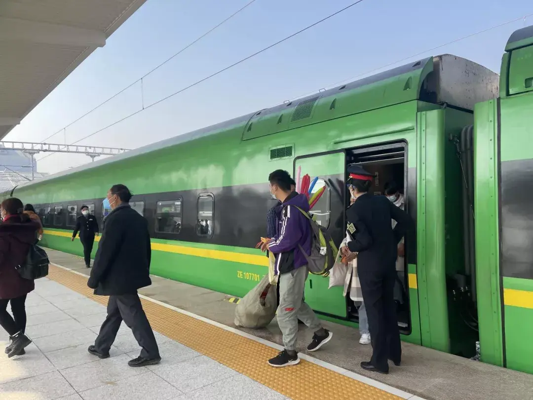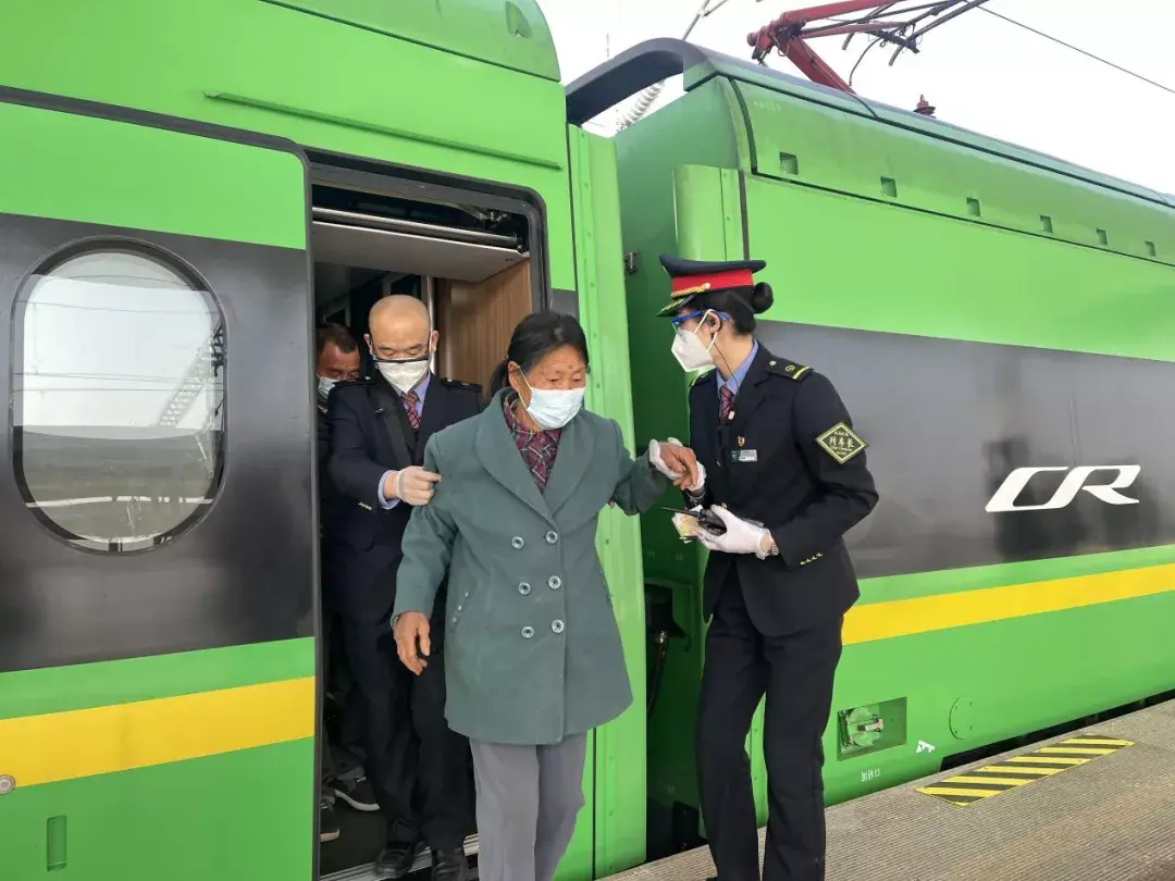 随着复兴号的进站,欢快的音乐随之在站台响起,快闪表演《姑娘的红裙》渲染着此刻的激动与兴奋,正如那翩翩飞舞的裙角,每一抹红色都是溢出唇角的喜悦。