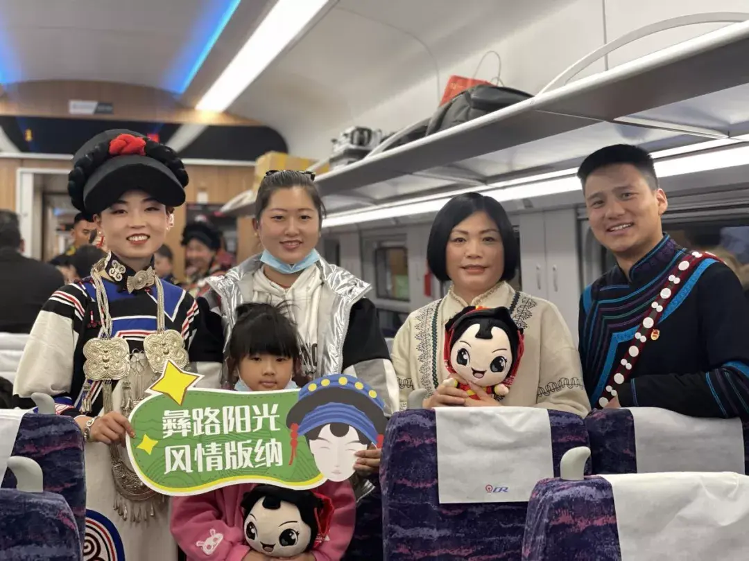傈僳族表演队伍登场,一同登场动车的还有当地特产,用甜蜜味道让此次旅途变得有滋有味。