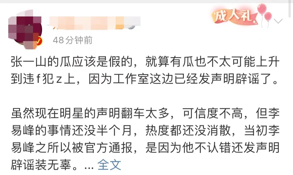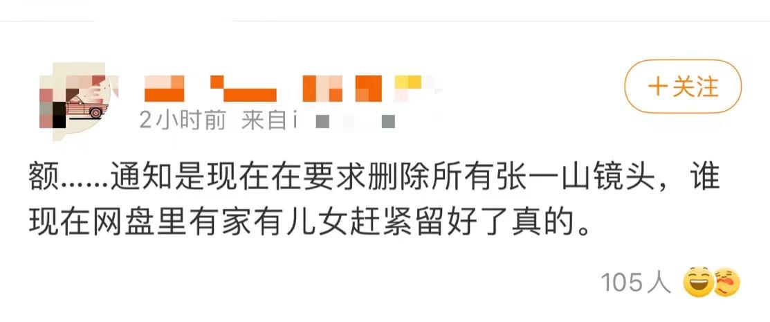 不过,有关于张一山的各种谣言仍在继续发酵。有多位网友在社交平台上发文透露自己正在做节目,却突然被告知要删掉张一山所有的镜头。